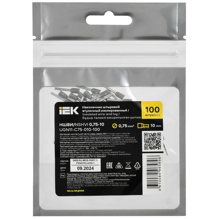 Наконечник НШВИ 0,75-10 серый (100шт/упак) IEK