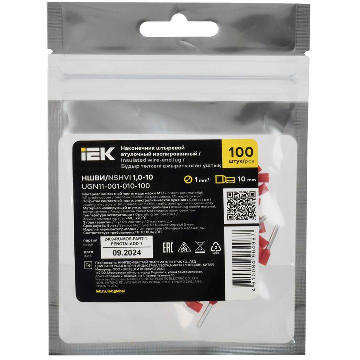 Наконечник НШВИ 1,0-10 темно-красный (100шт/упак) IEK