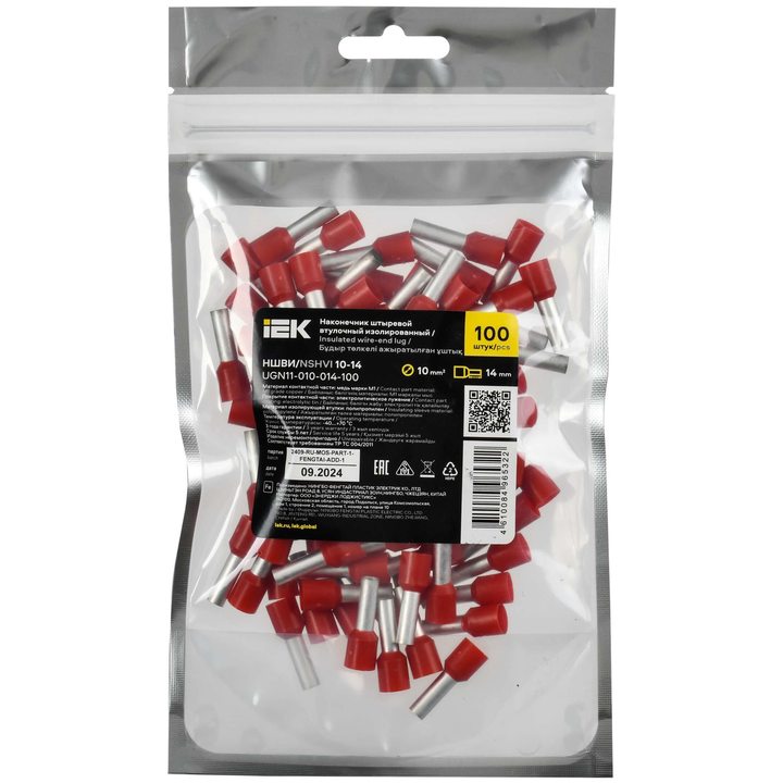 Наконечник НШВИ 10-14 темно-красный (100шт/упак) IEK