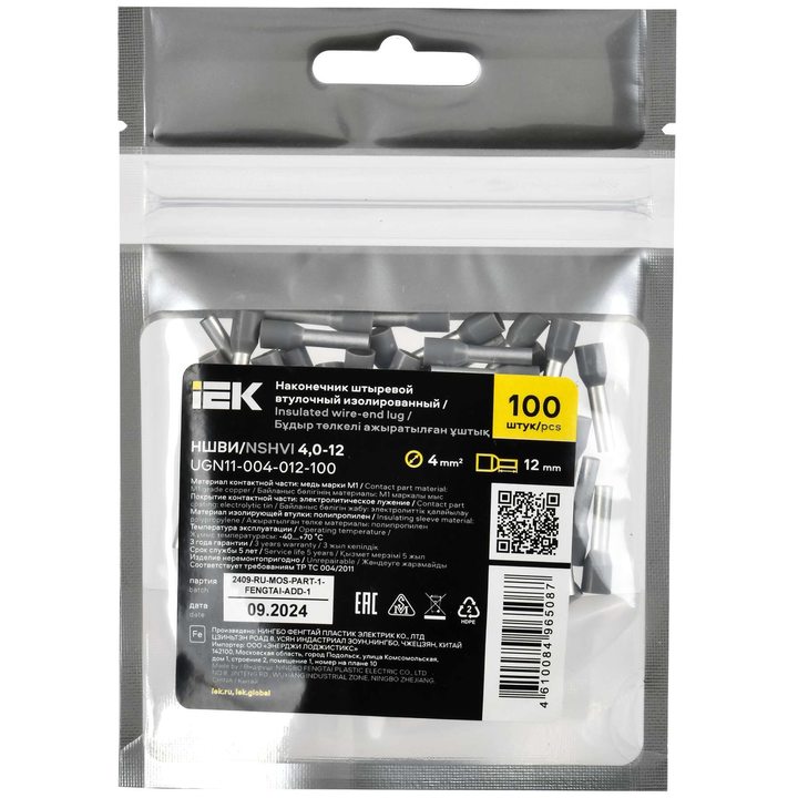Наконечник НШВИ 4,0-12 серый (100шт/упак) IEK