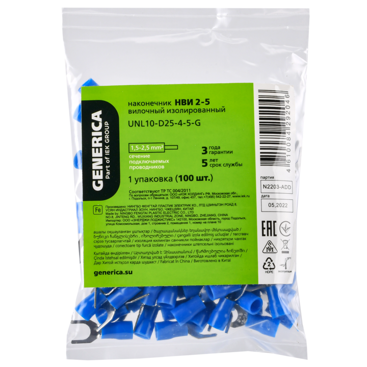 Наконечник НВИ 2-5 вилка 1,5-2,5мм (100шт/упак) GENERICA