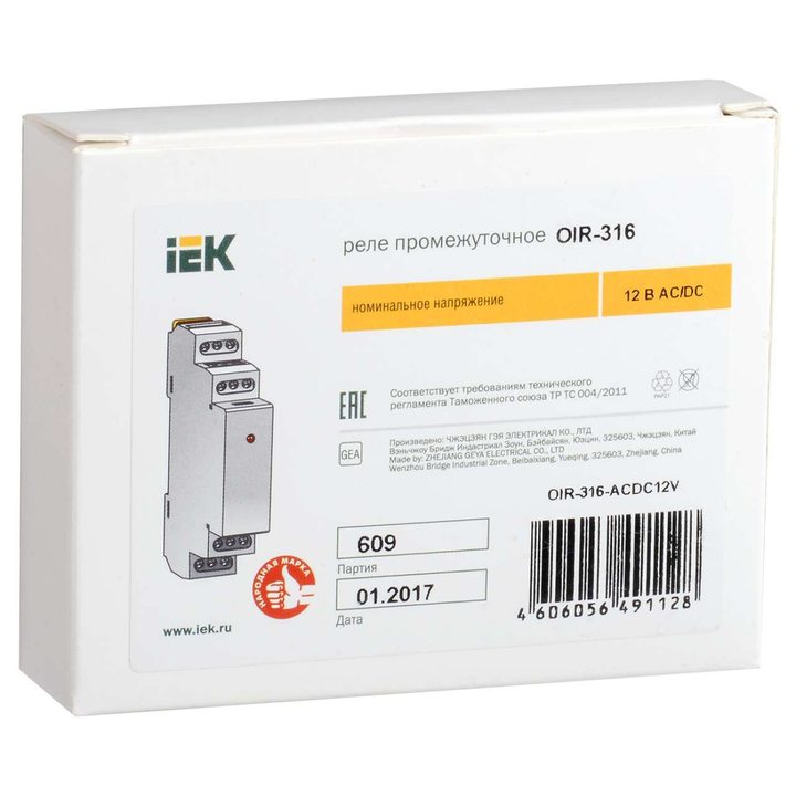 Реле промежуточное OIR 3 конт. (16А) 12В AC/DC ИЭК