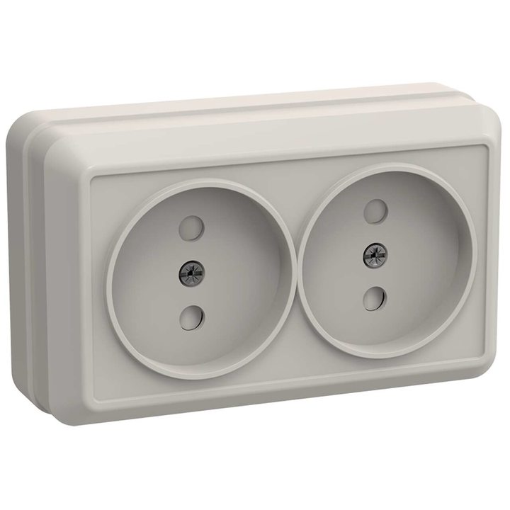 OKTAVA Розетка 2-местная без заземления с защитными шторками для открытой установки 10А РСш22-2-ОКм кремовый IEK