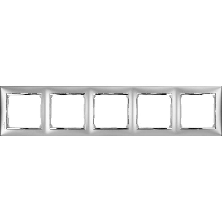 Pамка 5 постов алюминий/серебрянный штрих Valena