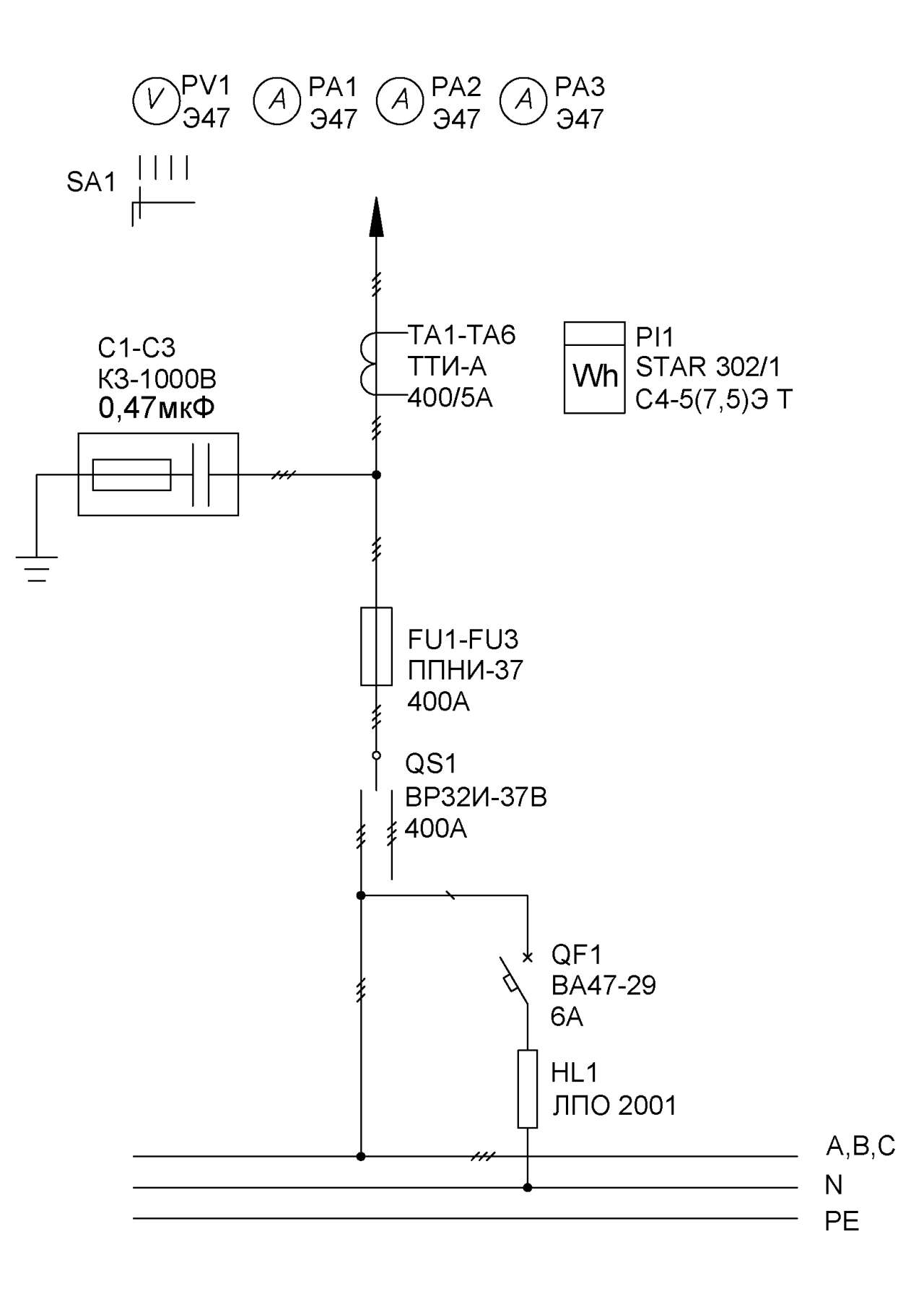 Панель вводная ВРУ-8503 МУ 2ВП-5-40-0-30 рубильник 1х400А плавкие вставки 3х400А выключатель автоматический 1Р 1х6А и учет IEK