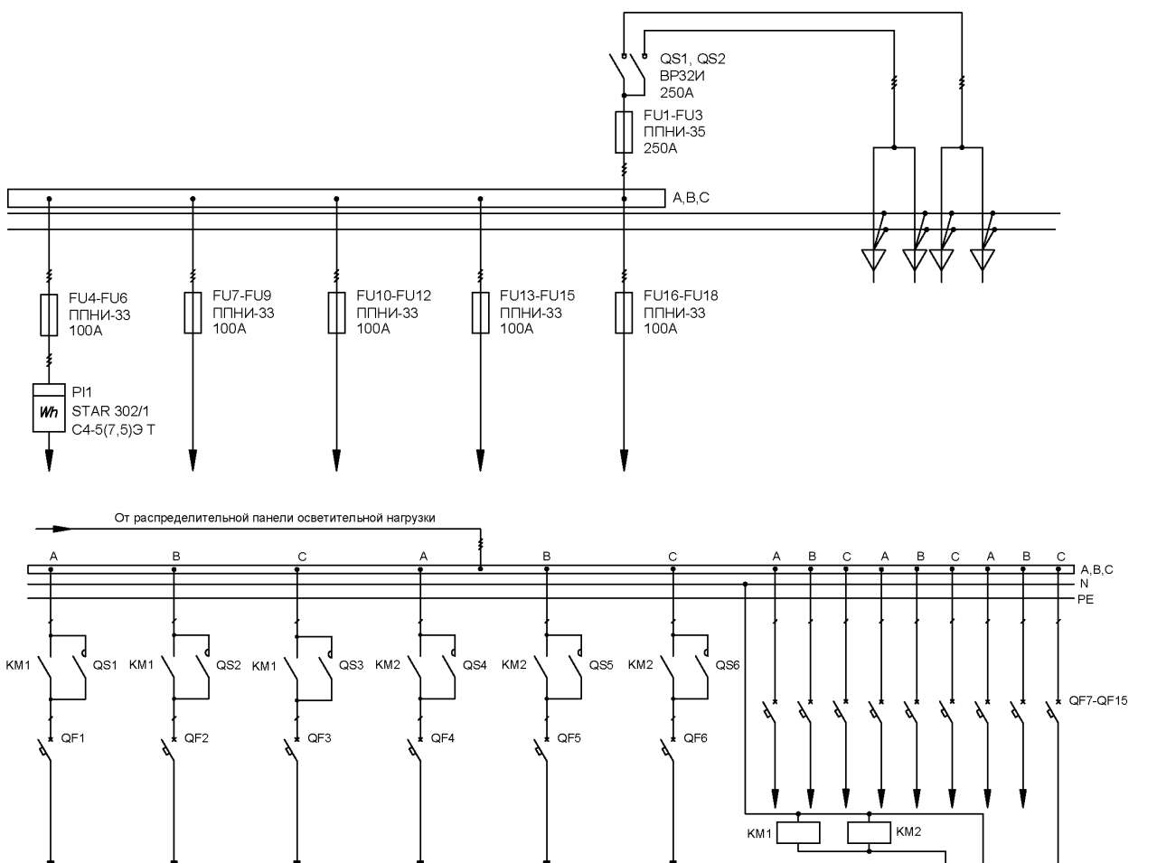 Панель вводно-распределительная ВРУ3-42 УХЛ4 3х250А 15х100А и панель управления освещением выключатели нагрузки 1p 6х32А автоматические выключатели 1p 15х16А фотореле контактор 2х18А и учет IEK