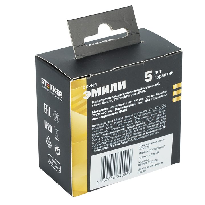 Переключатель 2-клавишный (механизм), STEKKER, 250В, 10А, серия Эмили, RSW10-5107-08, кашемир, soft touch