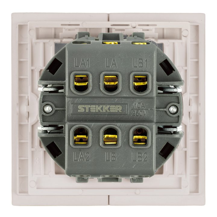 Переключатель 2-клавишный (механизм), STEKKER, 250В, 10А, серия Мия, RSW10-3107-08, пудровый жемчуг