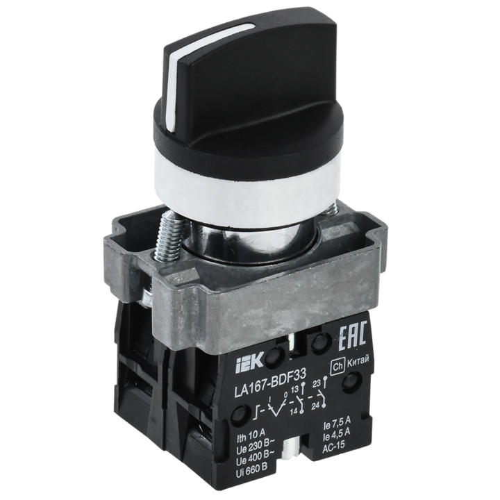 Переключатель LA167-BDF33 на 3 положения 2NO черный IEK