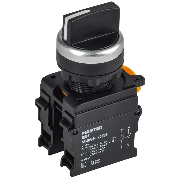 Переключатель на 3 положения возвратный 2NO чёрный MASTER IEK
