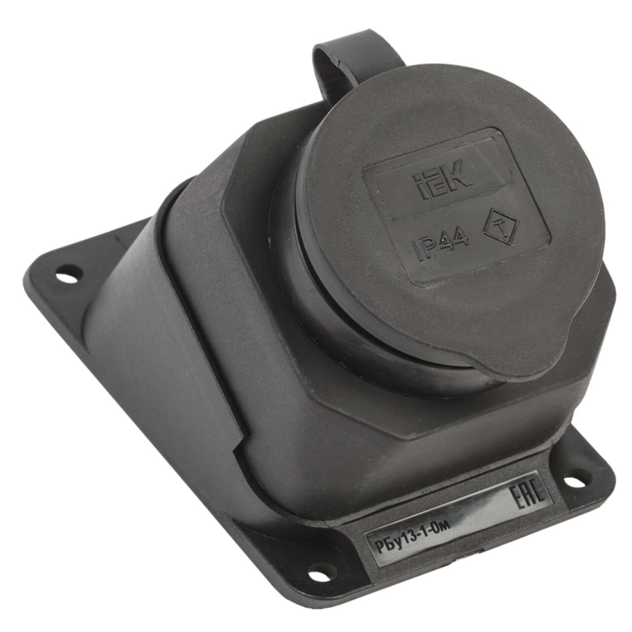 Розетка 1-м Омега РБу13-1-0м IP44 с защ. крышкой угловая настен. с заземл. каучук черн. IEK PKR22-016-2-K02