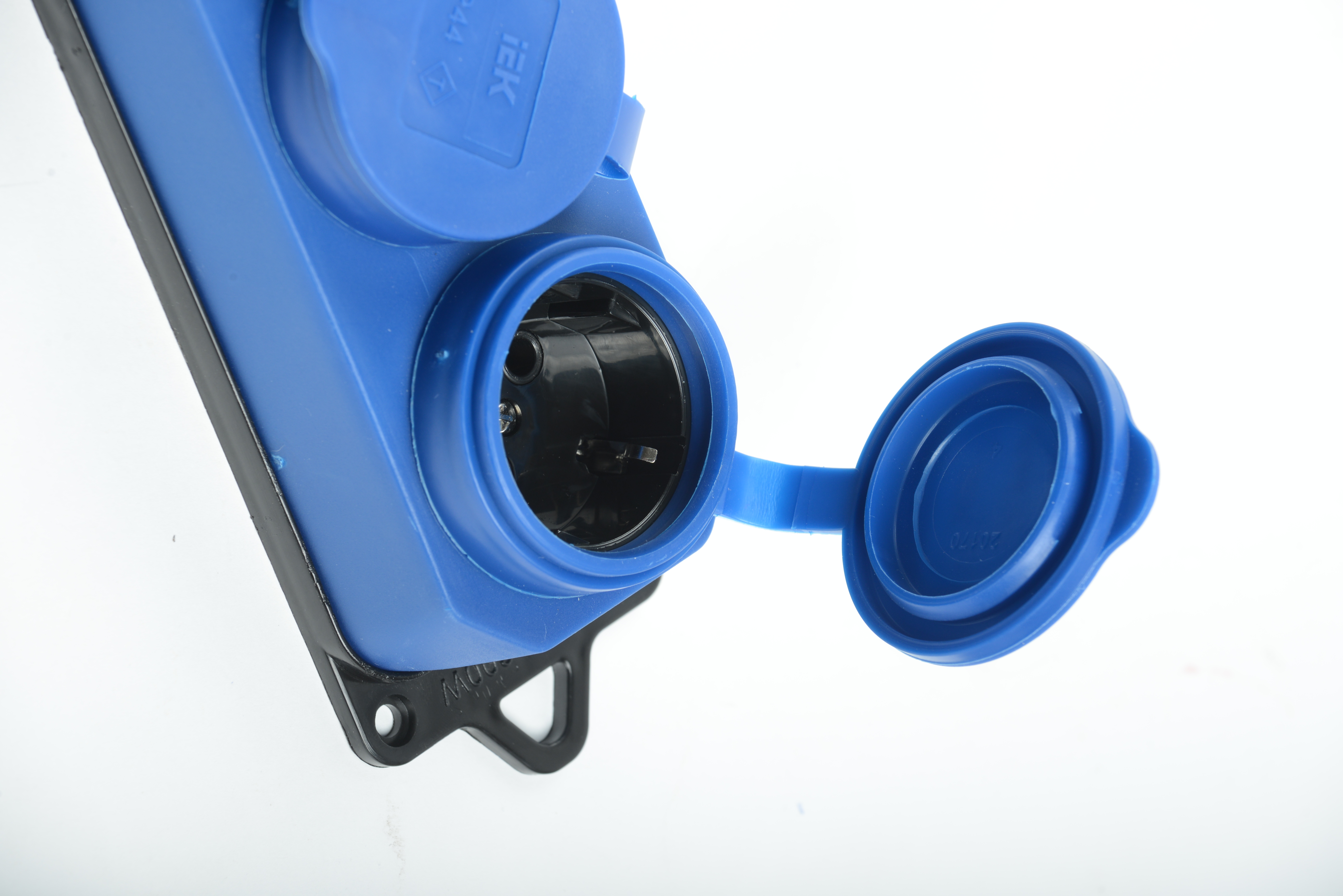 Розетка (колодка) 3-м Омега РБ33-1-0м IP44 с защ. крышкой каучук IEK PKR61-016-2-K02