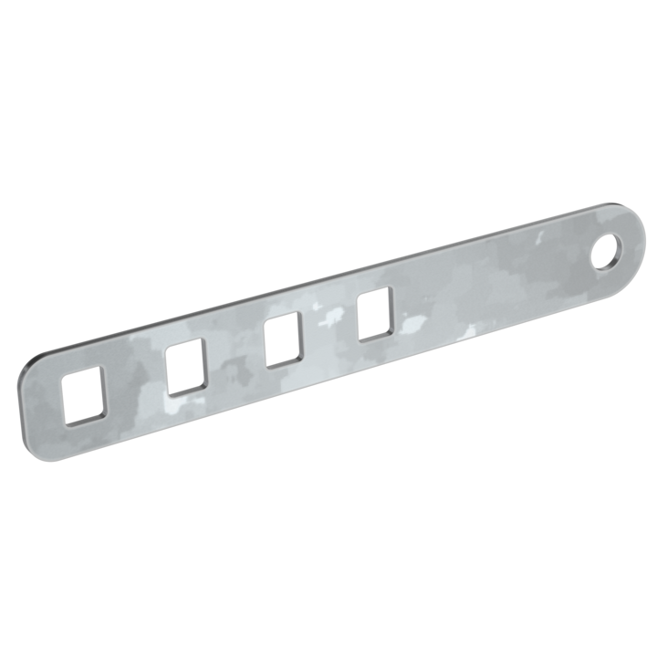 - Возможность фиксации угла поворота во время монтажа за счет наличия перфорации типа "улыбка". Повышенный БРН и высокая срезающая нагрузка за счет увеличенного количества винтов.