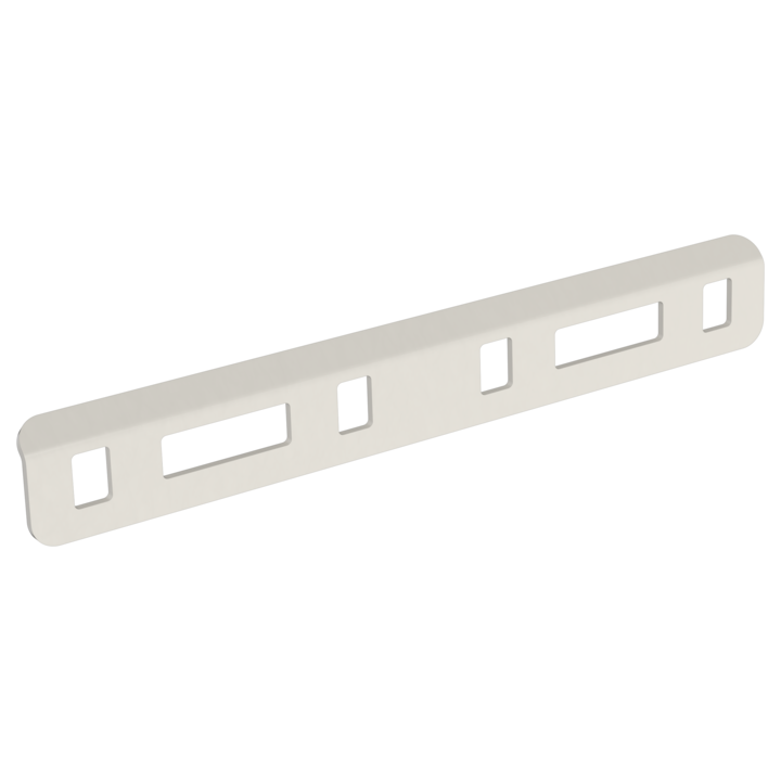 - Повышенная жесткость конструкции за счет увеличенной длины и наличия ребер жесткости. Универсальное расположение отверстий позволяет фиксировать все виды листовых лотков и фасонных секций серии ESCA.