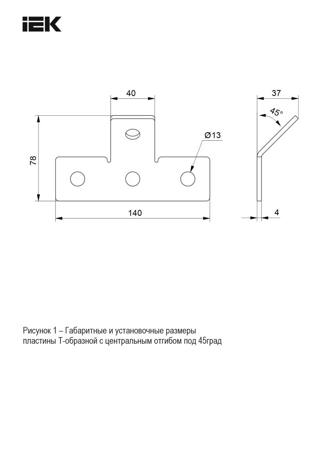 Пластина T-образная с центральным отгибом под 45град EZ IEK