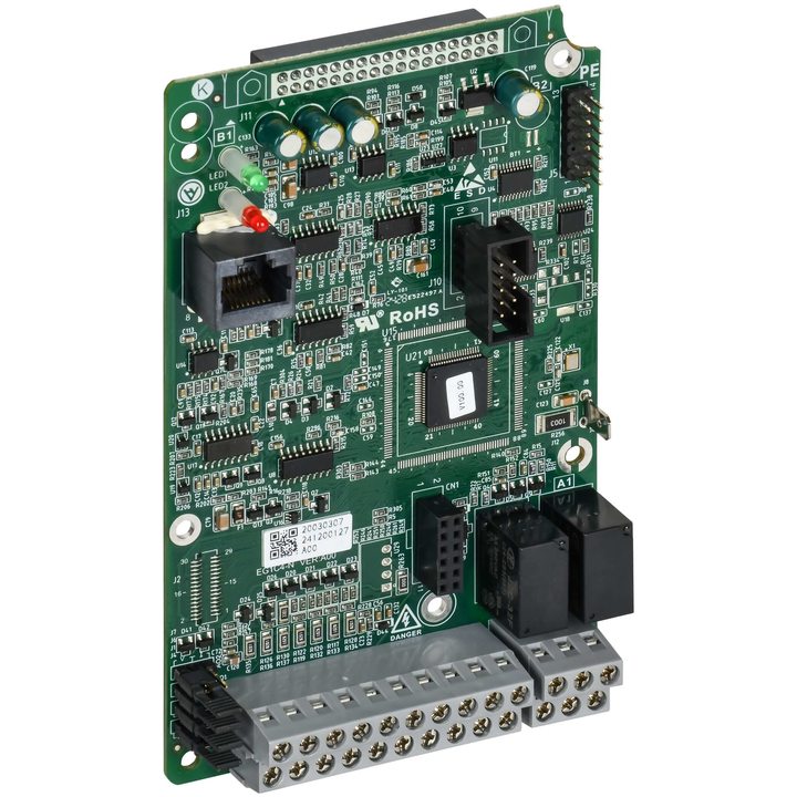 - Компактность и размещение внутри корпуса ПЧ позволяют легко коммутировать сигнальные кабеля.