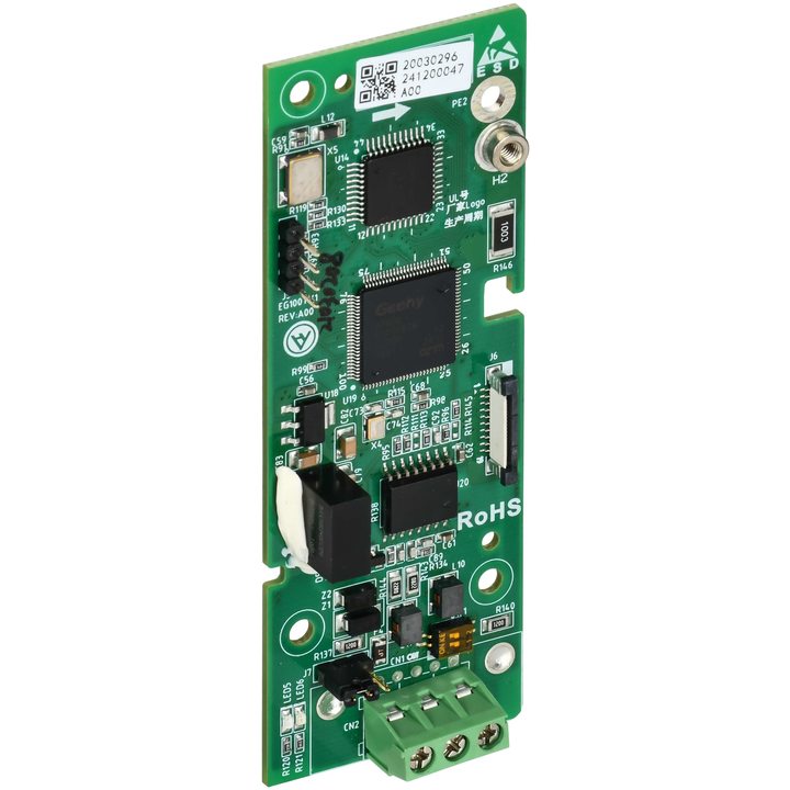 - Компактность и размещение внутри корпуса ПЧ позволяют легко коммутировать сигнальные кабеля.