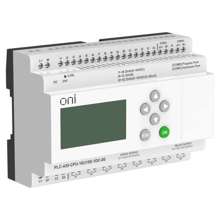ПЛК 430 Модуль ЦПУ 4 DI 12 UI (0-10 В/DI) 8 RO 2 TO 24В DC с Ethernet портом с экраном ONI