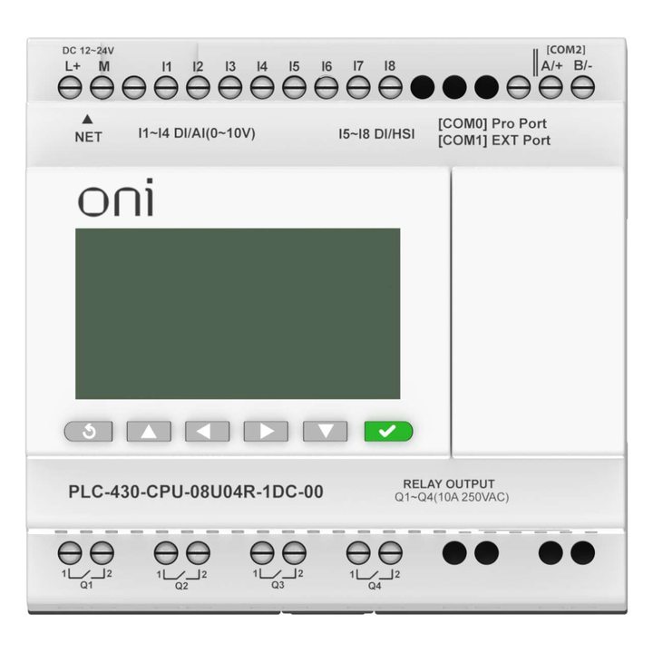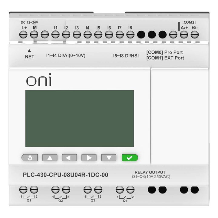 ПЛК 430 Модуль ЦПУ 4 DI 4 UI (0-10 В/DI) 4 RO 24В DC с Ethernet портом с экраном ONI