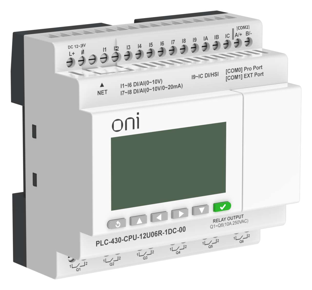 ПЛК 430 Модуль ЦПУ 4 DI 6 UI (0-10 В/DI) 2 UI (0-10 В/0-20 мА/DI) 6 RO 24В DC с Ethernet портом с экраном ONI