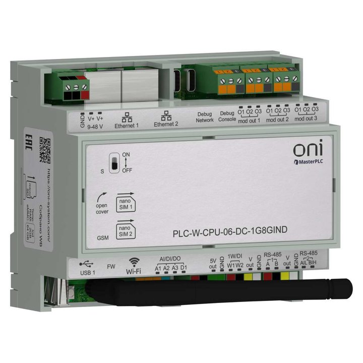 ПЛК W. CPU 6 IO 1GB RAM 8GB ROM 24 В DC промышленного исполнения ONI