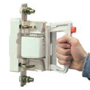 Все габариты плавких вставок ППНИ удобно устанавливать или демонтировать универсальной рукояткой съема РС-1, изоляция которой выдерживает напряжение до 1000 В.