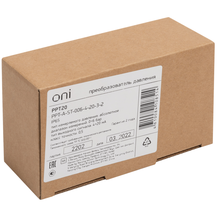 Преобразователь абсолютного давления PPT20 0,5% 0-6Бар 4-20мА M20 DIN43650 ONI