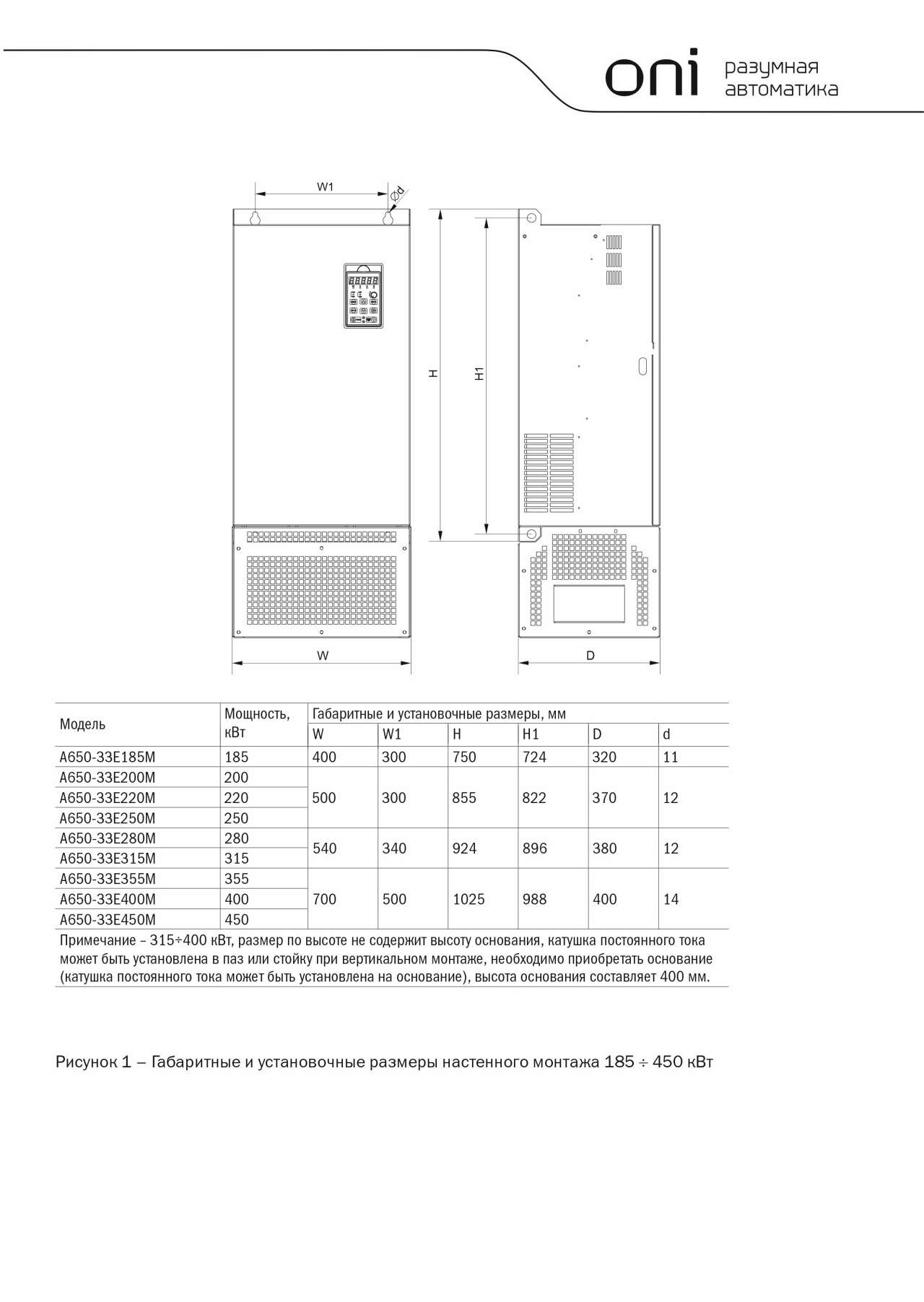 Преобразователь частоты A650 380В 3Ф 220кВт 426А M ONI