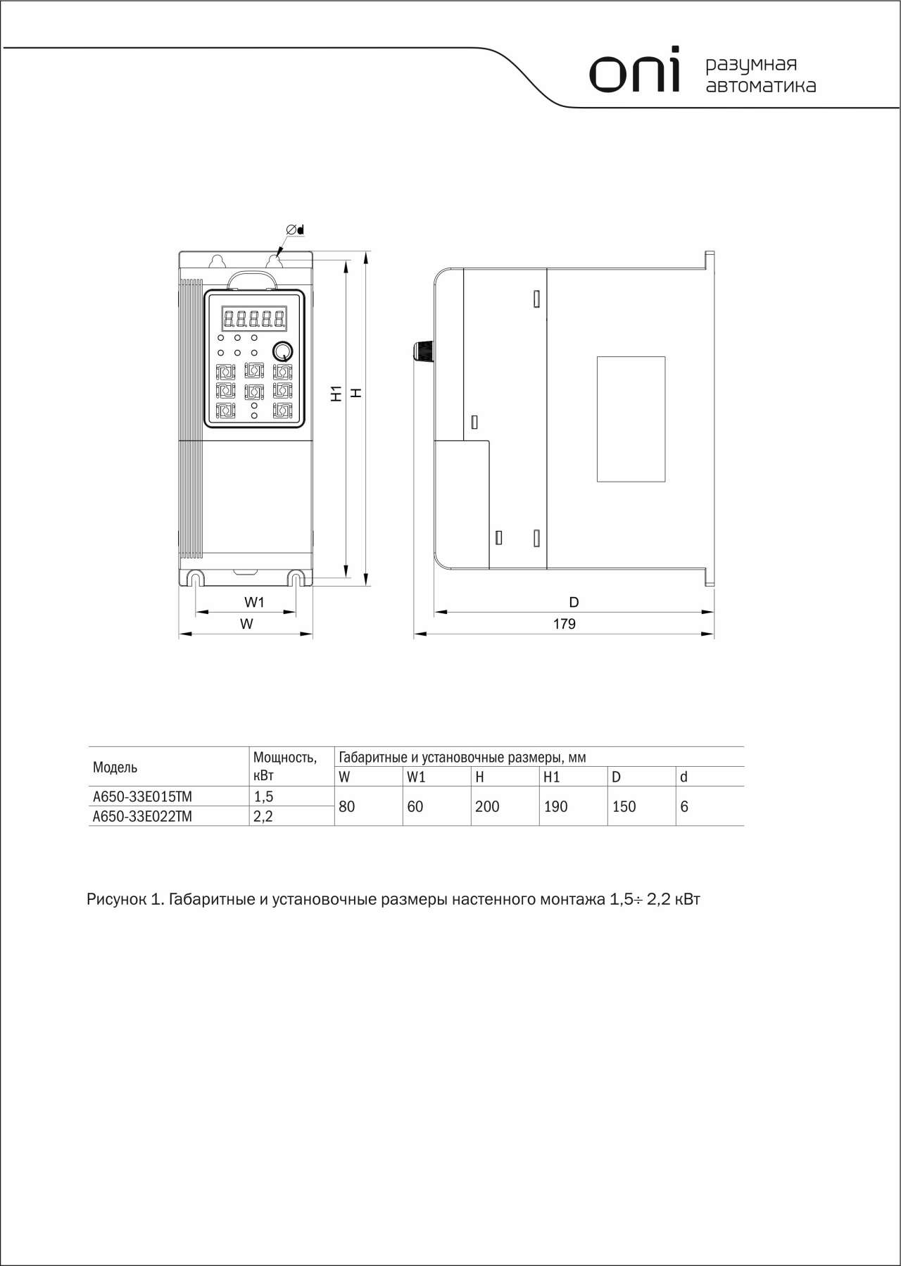 Преобразователь частоты A650 380В 3Ф 2,2кВт 5,5А M ONI