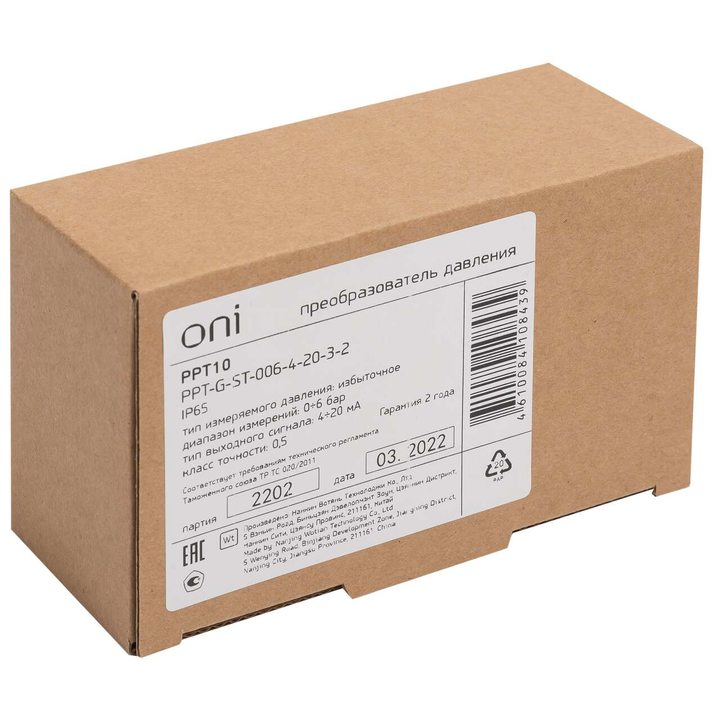 Преобразователь избыточного давления PPT10 0,5% 0-6Бар 4-20мА M20 DIN43650 ONI