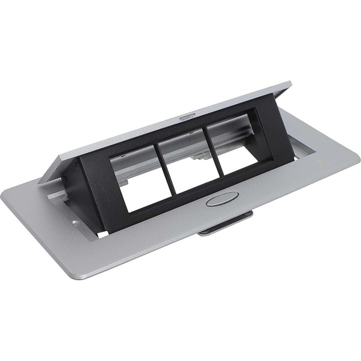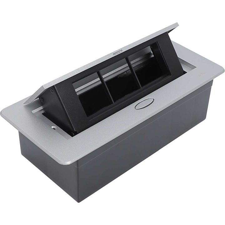 - Блок плавно выдвигается после нажатия на кнопку обеспечивая удобный доступ к розеткам в любом месте стола, не нужно тянутся к стене или искать удлинитель.