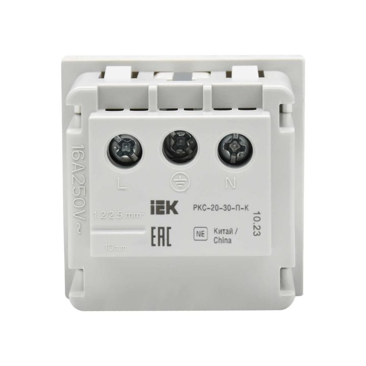 PRIMER РКС-20-30-П-К Розетка с заземляющим контактом защитной шторкой и винтовым зажимом (2 модуля) белая IEK