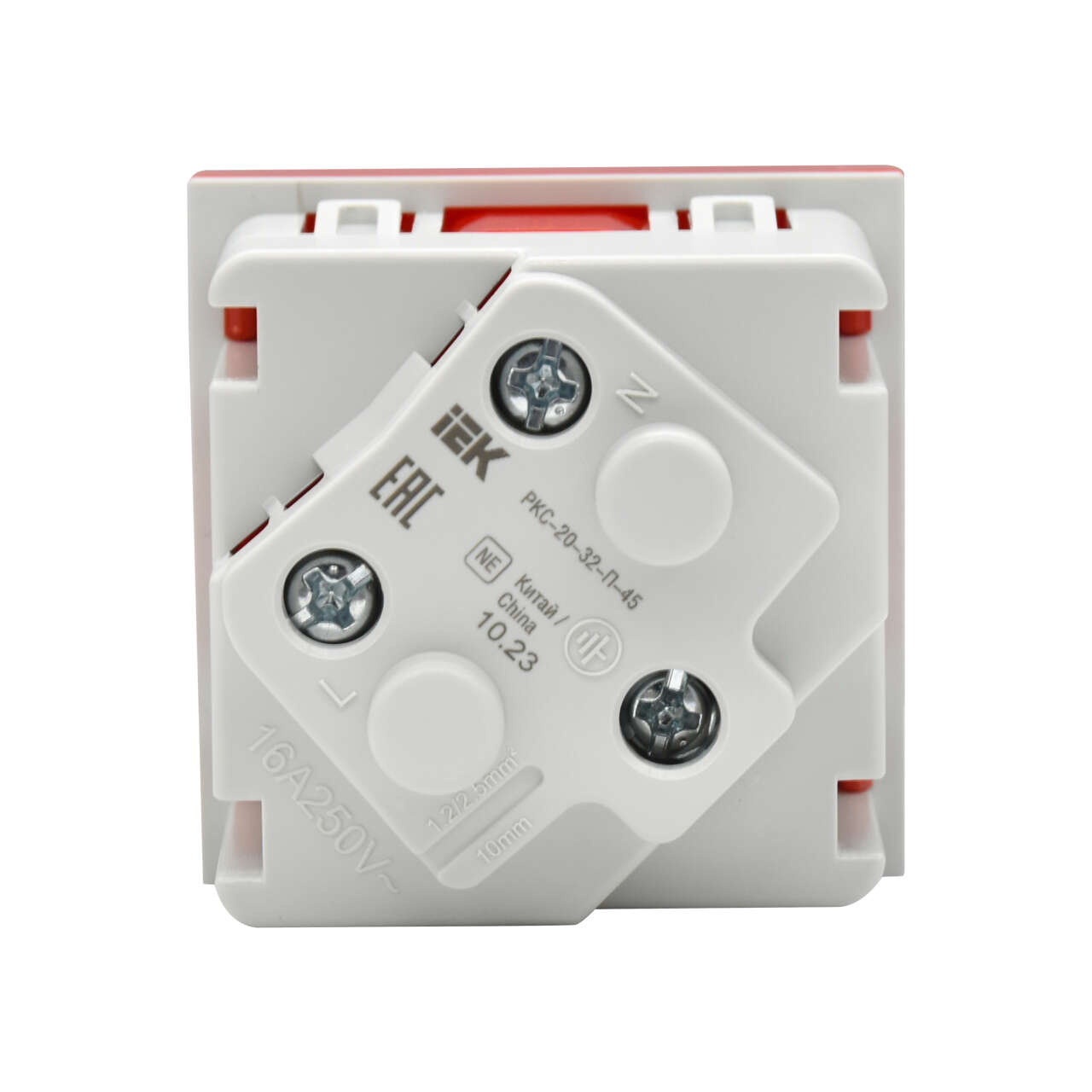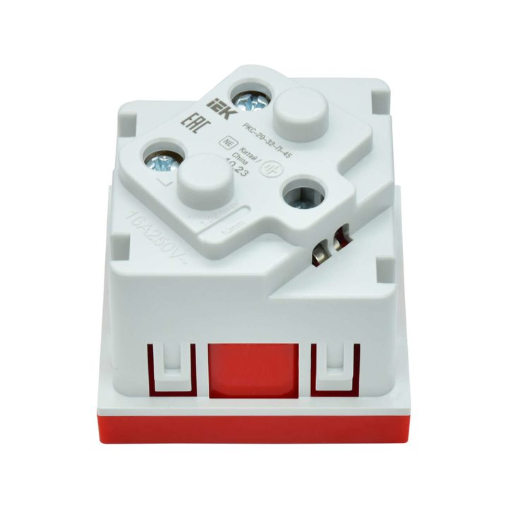 PRIMER РКС-20-32-П-45 Розетка 45град с заземляющим контактом защитной шторкой и винтовым зажимом (2 модуля) красная IEK