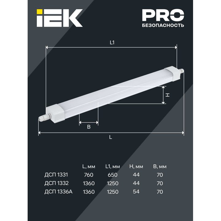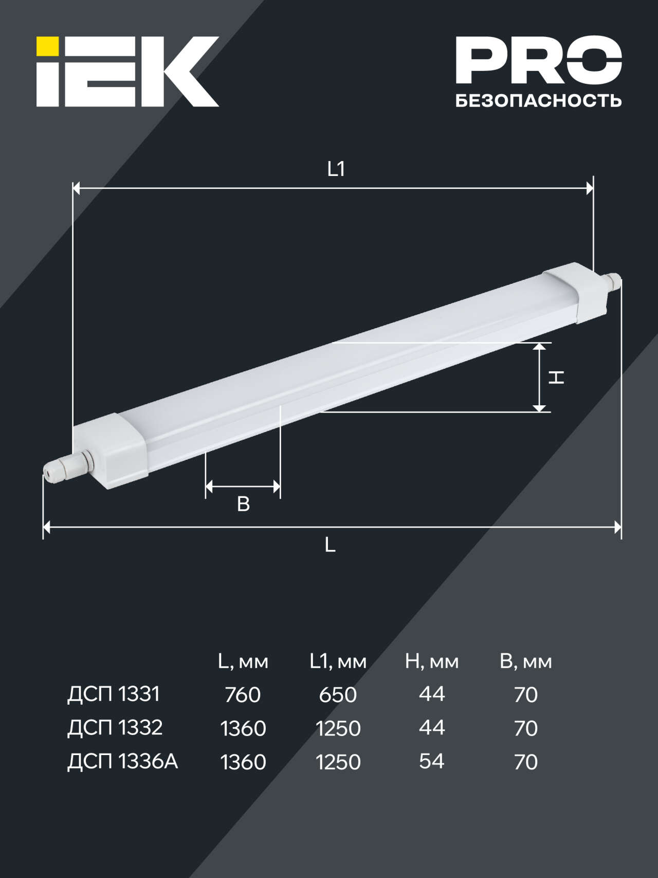 PRO Светильник аварийный ДСП 1336А 36Вт 3ч 6500К IP65 1250мм IEK