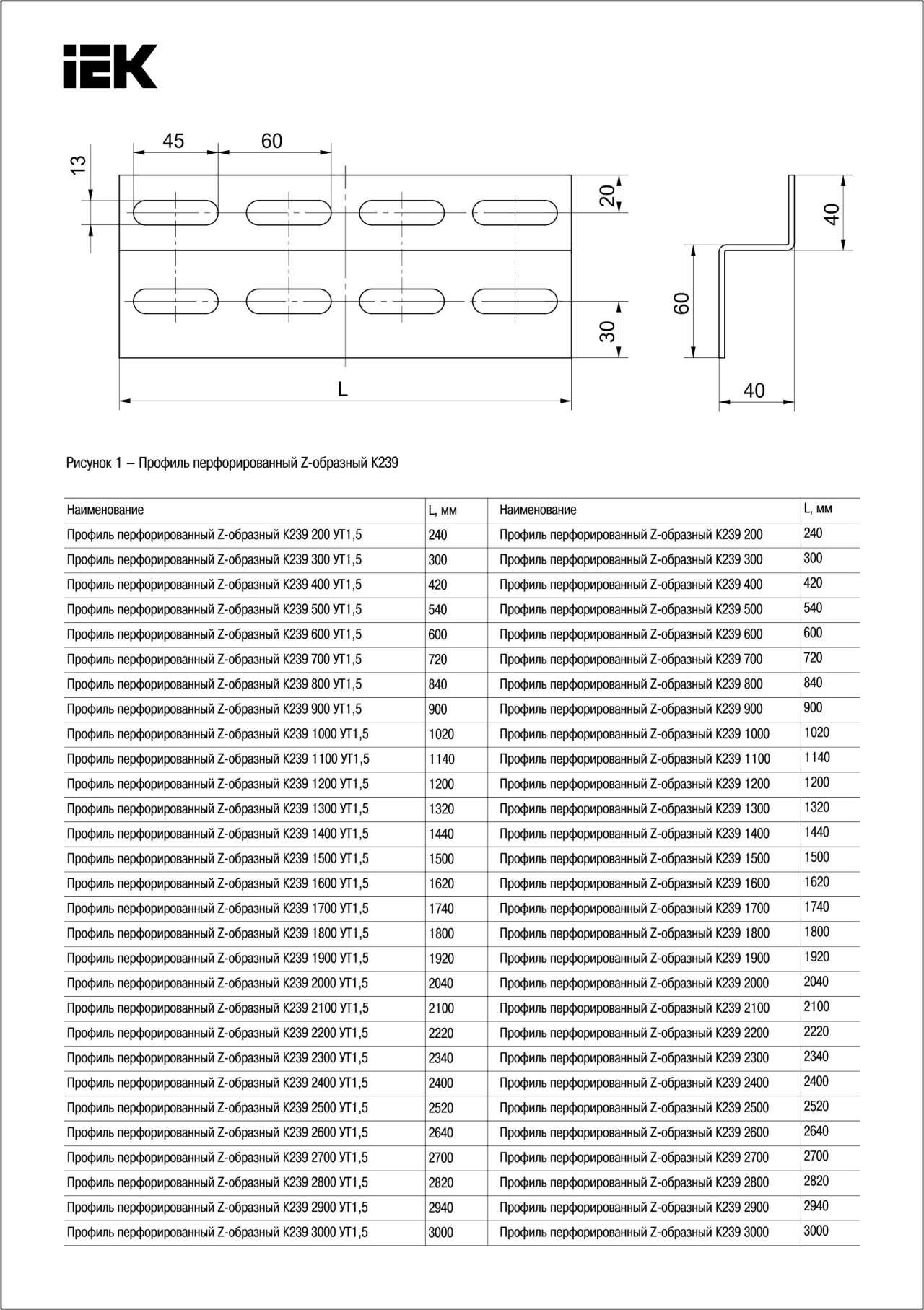 Профиль перфорированный Z-образный К239 2000 УТ1,5 IEK