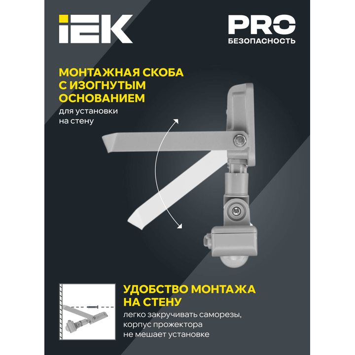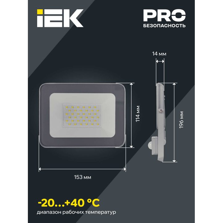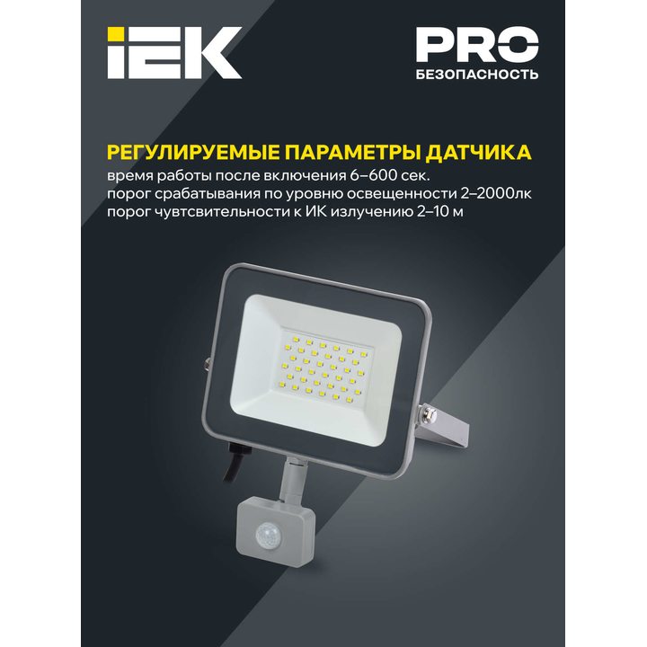 Прожектор светодиодный СДО 07-30Д 30Вт 6500К IP44 с датчиком движ. сер. IEK LPDO702-30-K03