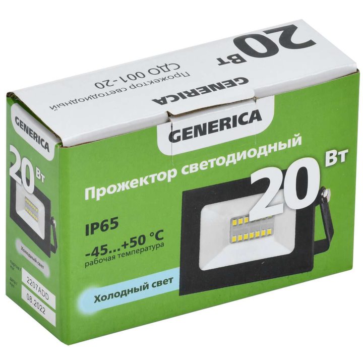 Прожектор светодиодный СДО 001-20 6500К IP65 черн. GENERICA LPDO501-020-65-K02-G