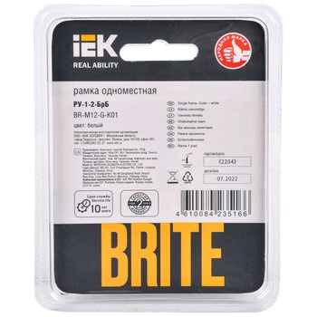 Рамка 1-м BRITE РУ-1-2-БрБ стекло бел. IEK BR-M12-G-K01