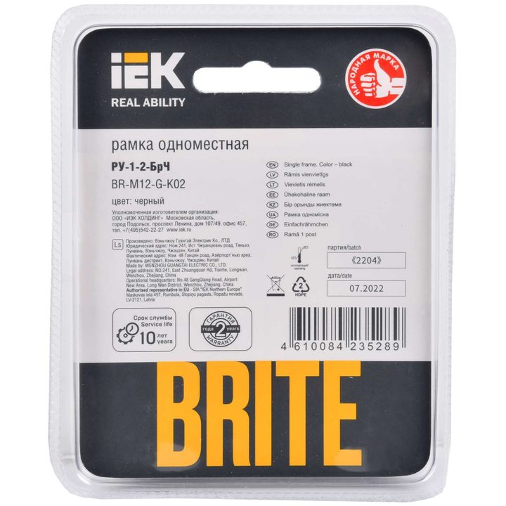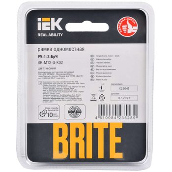 Рамка 1-м BRITE РУ-1-2-БрЧ стекло черн. IEK BR-M12-G-K02