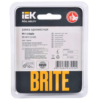 Рамка 1-м BRITE РУ-1-2-БрСе стекло сер. IEK BR-M12-G-K03