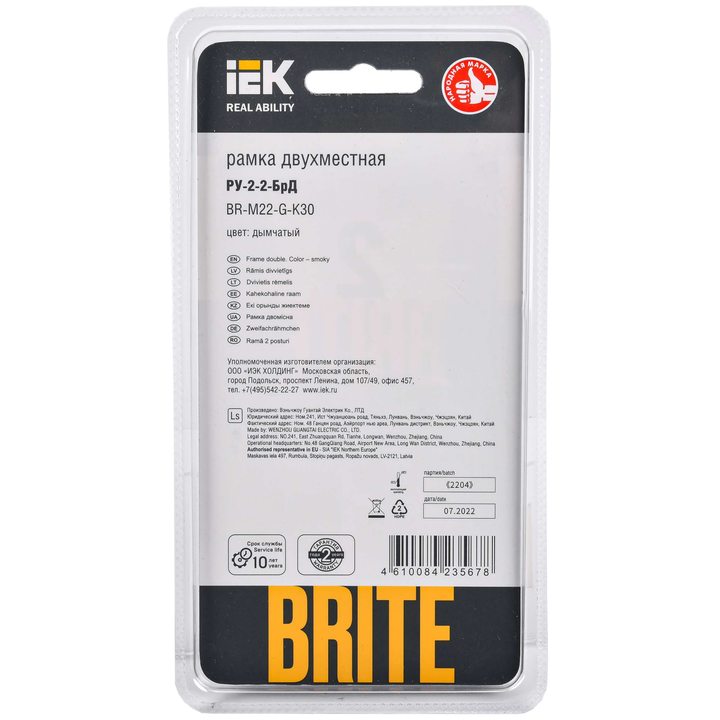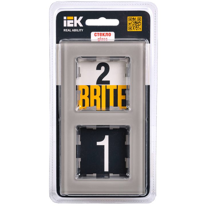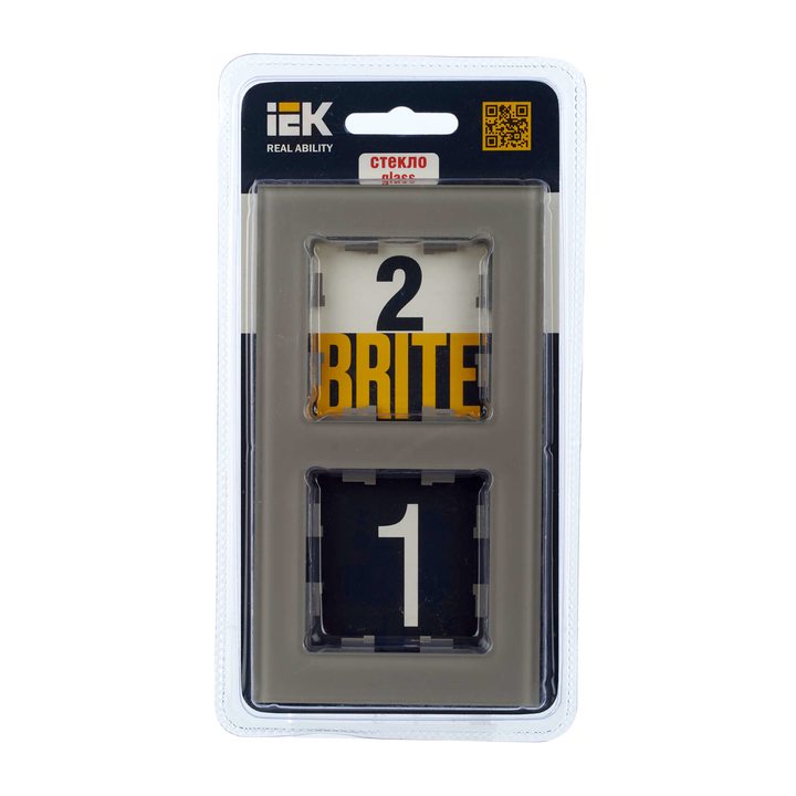 Рамка 2-м BRITE РУ-2-2-БрД стекло дым. IEK BR-M22-G-K30