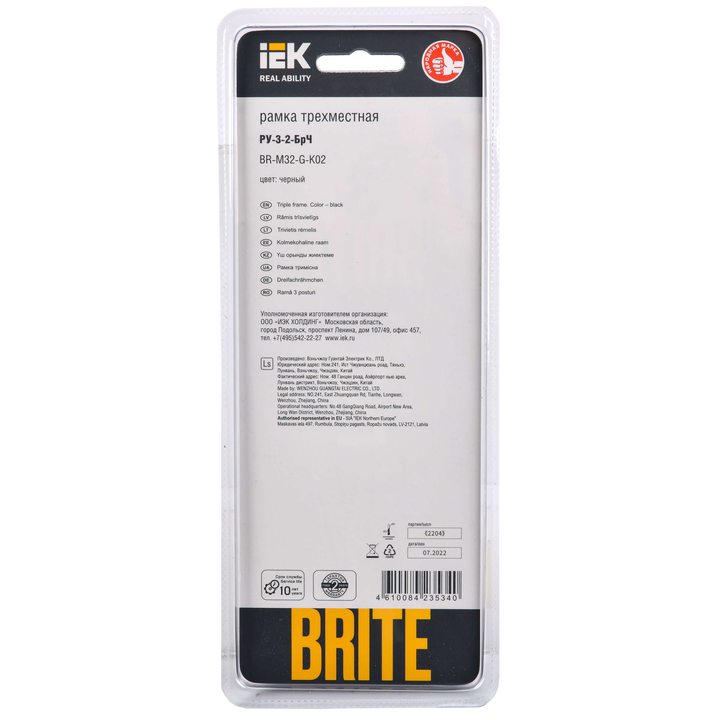 Рамка 3-м BRITE РУ-3-2-БрЧ стекло черн. IEK BR-M32-G-K02