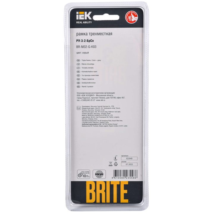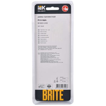 Рамка 3-м BRITE РУ-3-2-БрСе стекло сер. IEK BR-M32-G-K03