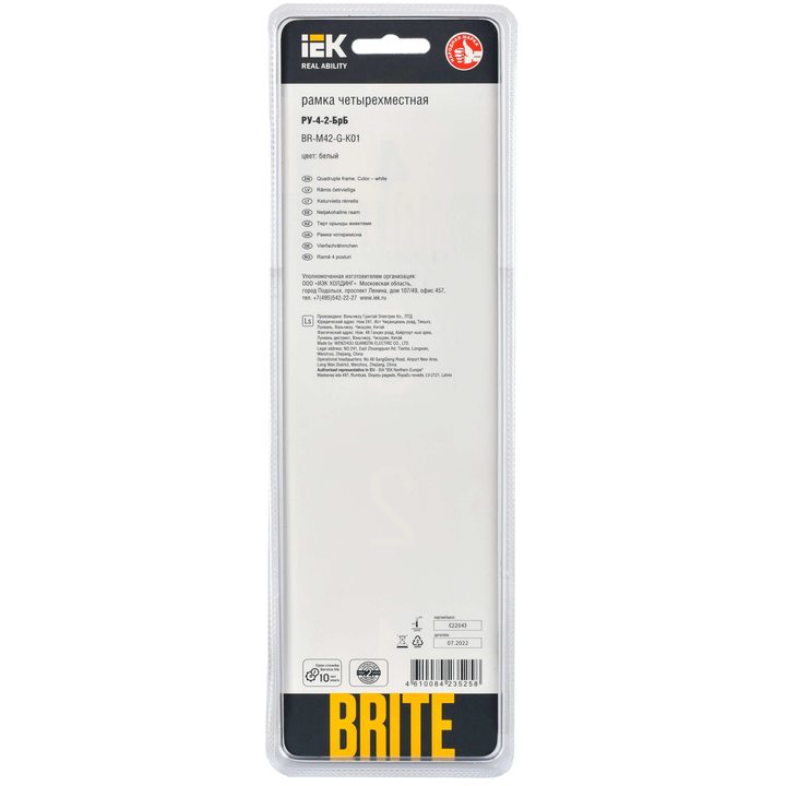 Рамка 4-м BRITE РУ-4-2-БрБ стекло бел. IEK BR-M42-G-K01