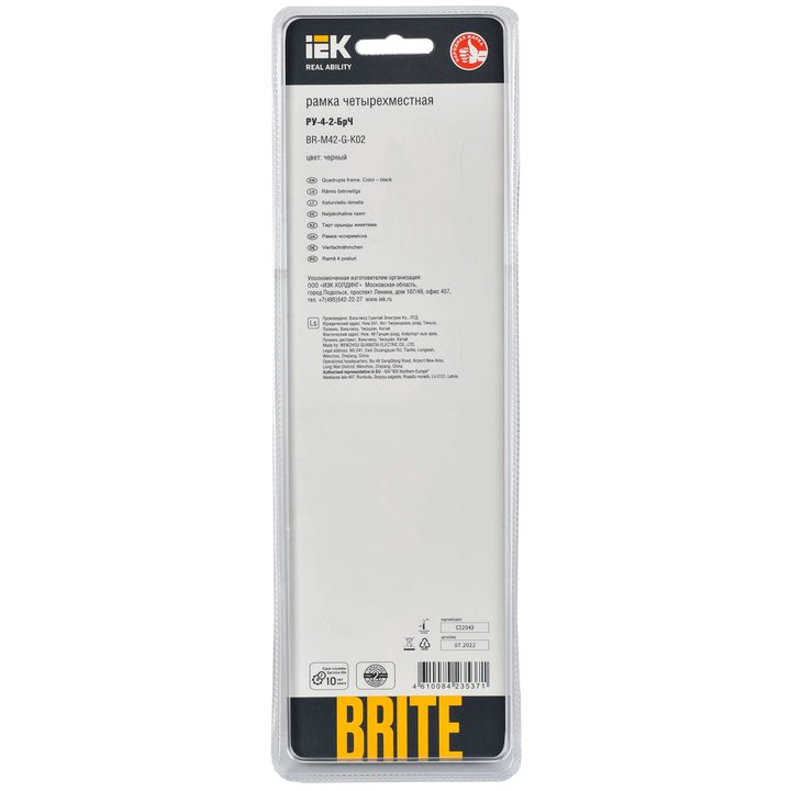 Рамка 4-м BRITE РУ-4-2-БрЧ стекло черн. IEK BR-M42-G-K02