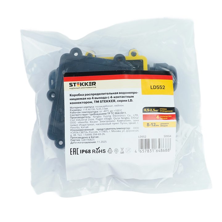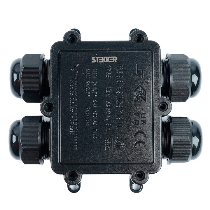 Распределительная коробка STEKKER LD552, количество вводов: 4, поликарбонат, нейлон, цвет черный, размер 114,4*106,7*35,3мм.