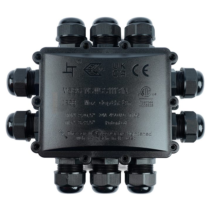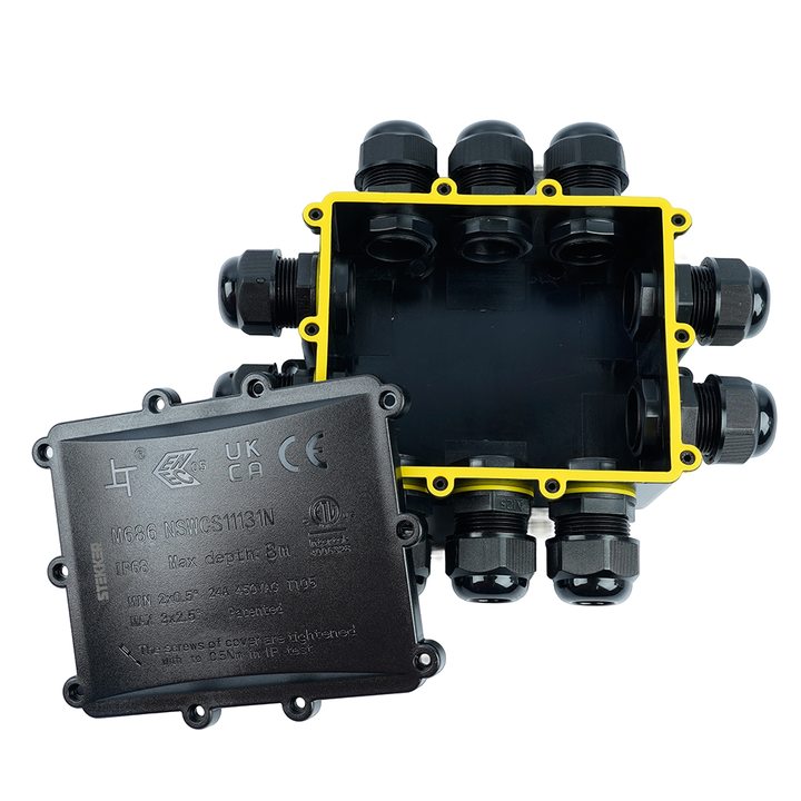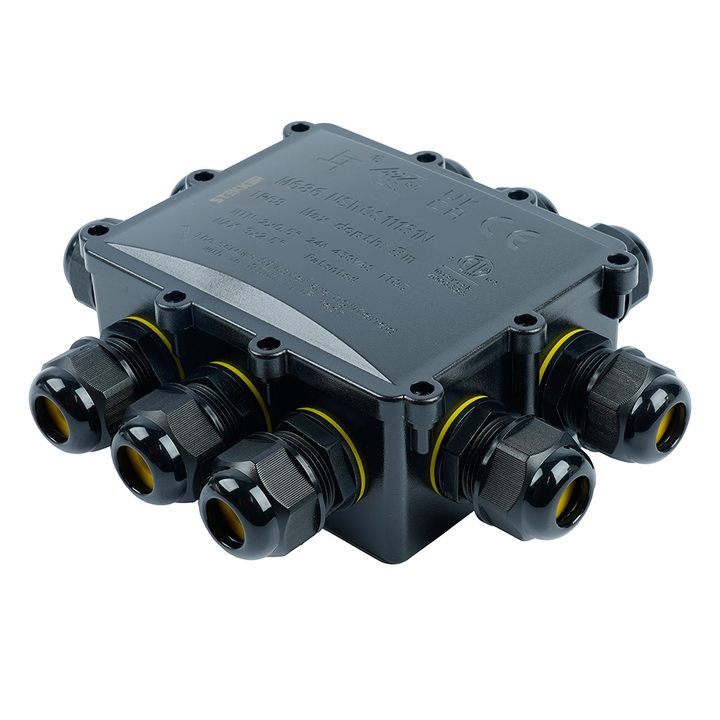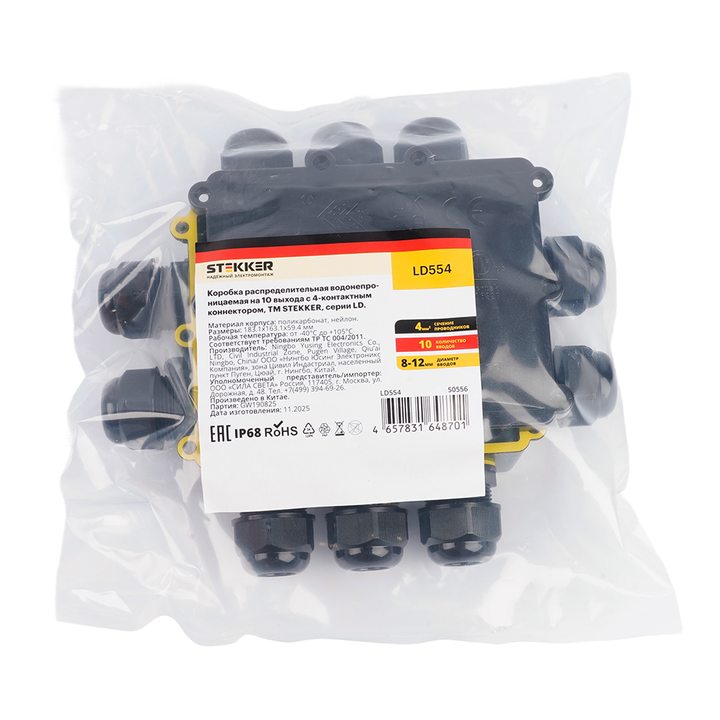 Распределительная коробка STEKKER LD554, количество вводов: 10, поликарбонат, нейлон, цвет черный, размер 183.1*163,1*59,4мм.
