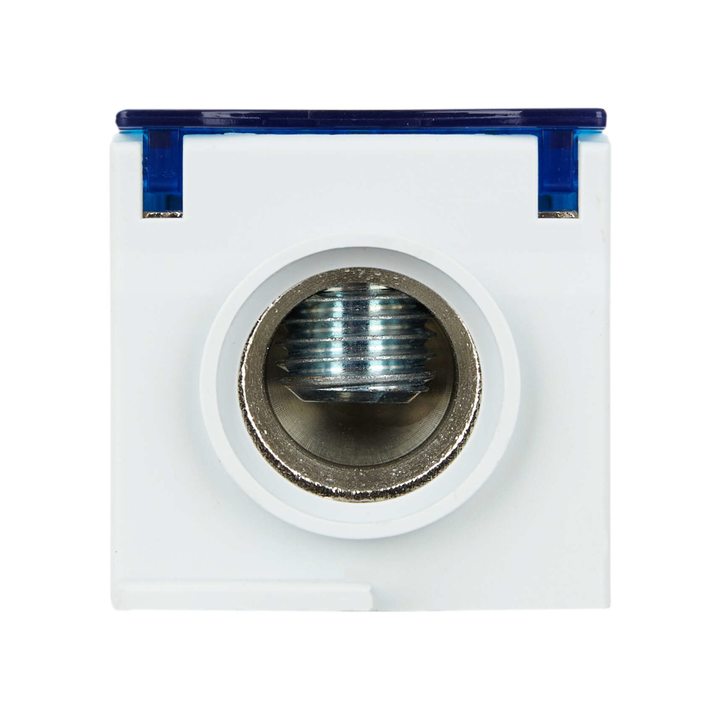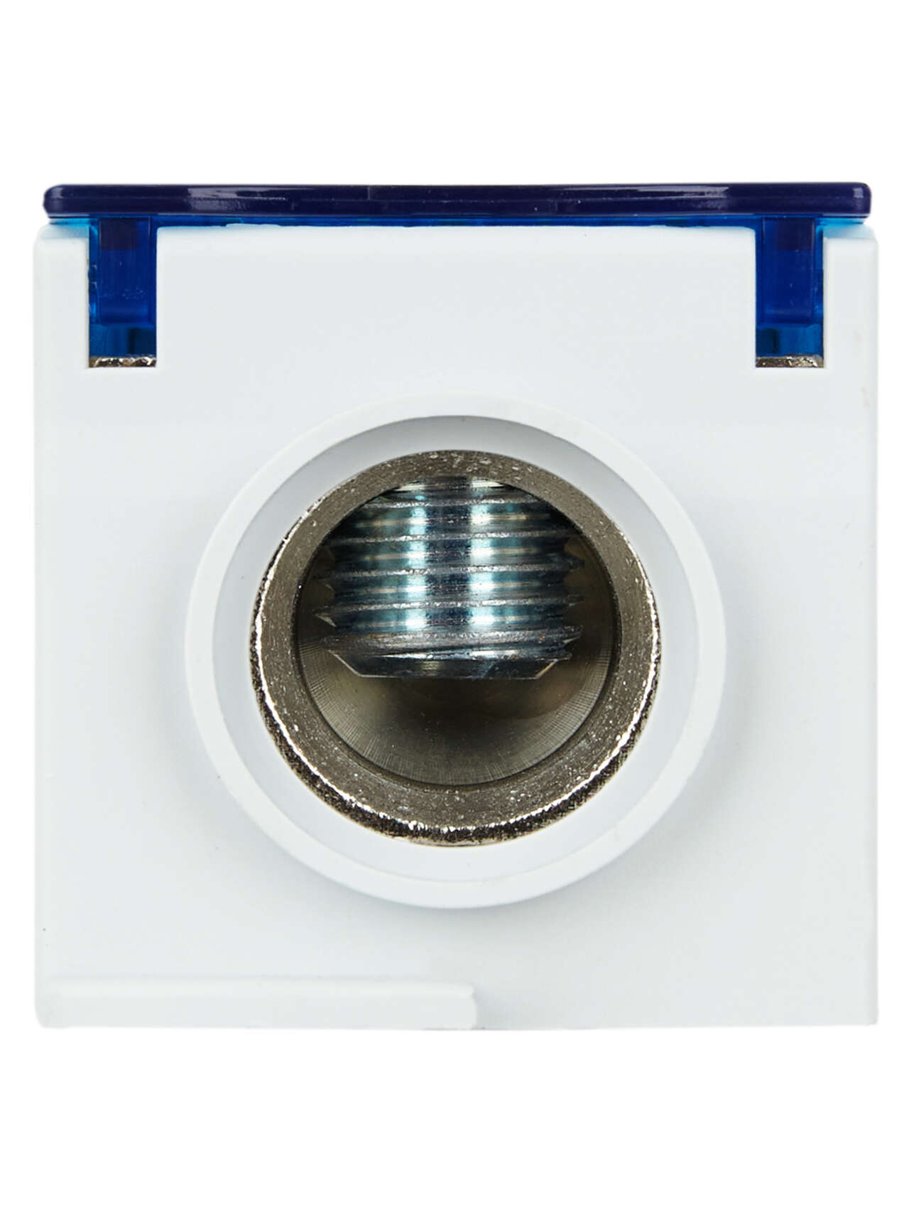 Прозрачная лицевая крышка для визуального контроля и защиты от прикосновения к токоведущим частям дополнительно снабжена выступами для удерживания прижимного винта.
