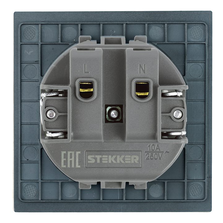 Розетка 1-местная с защитной шторкой (механизм), STEKKER, б/з, 250В, 16А, серия Мия, RST16-3109-05, черный бархат