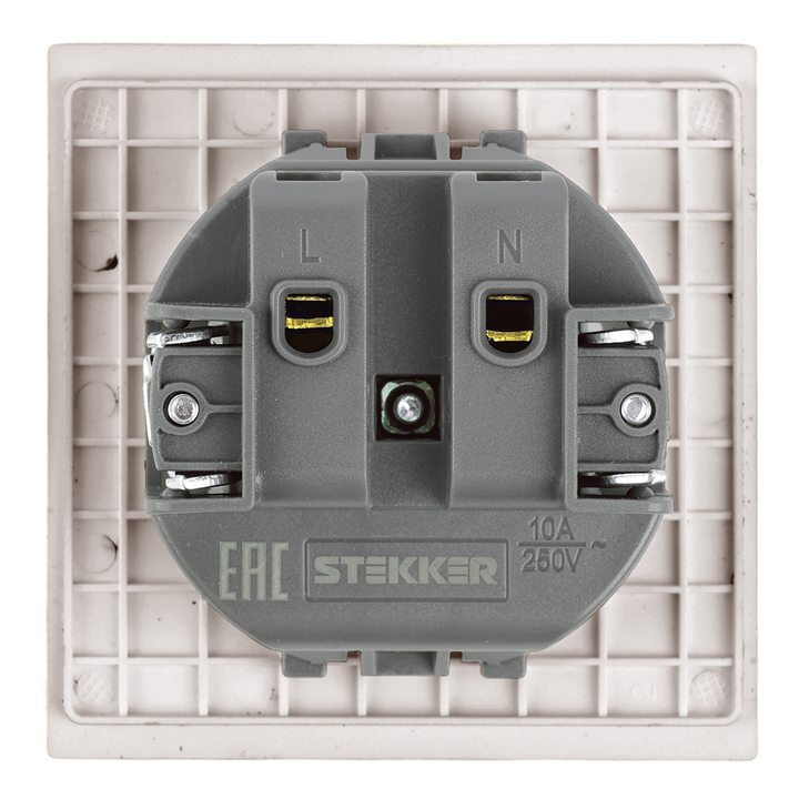 Розетка 1-местная с защитной шторкой (механизм), STEKKER, б/з, 250В, 16А, серия Мия, RST16-3109-08, пудровый жемчуг